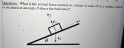 What is the normal force exerted on a block of mass M by a surface which is inclined at an angle theta above the horizon...