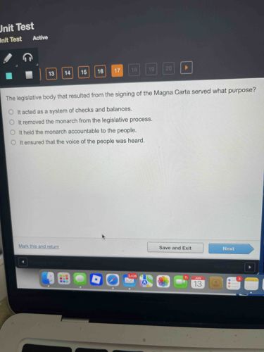 The legislative body that resulted from the signing of the Magna Carta, which is generally recognized as the beginnings of Parliament in England, served the purpose of holding the monarch accountable to the people. This was achieved by establishing the principle that the king was subject to the law, and not above it. It also led to the creation of a council of barons that would eventually evolve into Parliament, which could advise the king and limit his power.